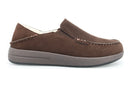 The perfect slipper for slip-on comfort and a rubber outsole for traction on outdoor surfaces Suede upper with fold-down heel counter for slip-on convenience. Faux shearling lining for warmth.